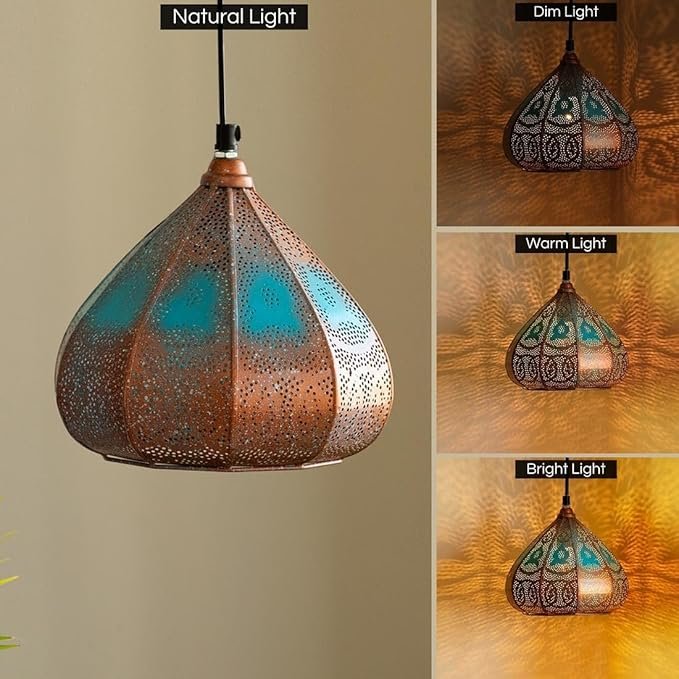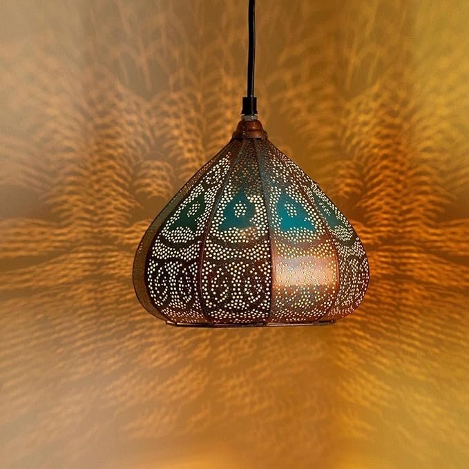 - PACKAGE CONTENT: 1 Pendant Lamp, COLOR: Copper & Blue, MATERIAL: Powder Coated Iron